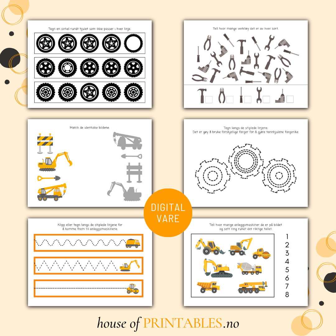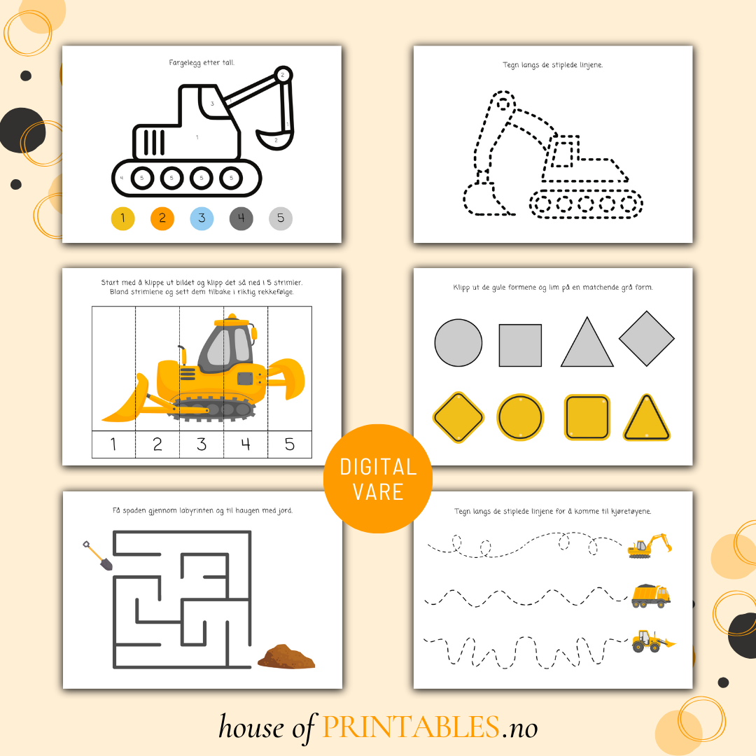 Oppgavehefte for glade barn som elsker anleggsområder og anleggsmaskiner!