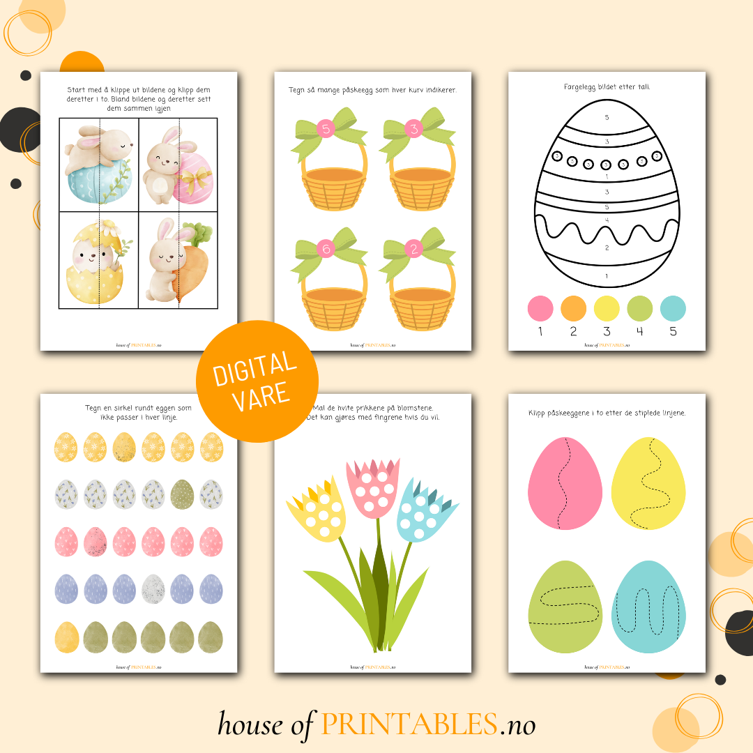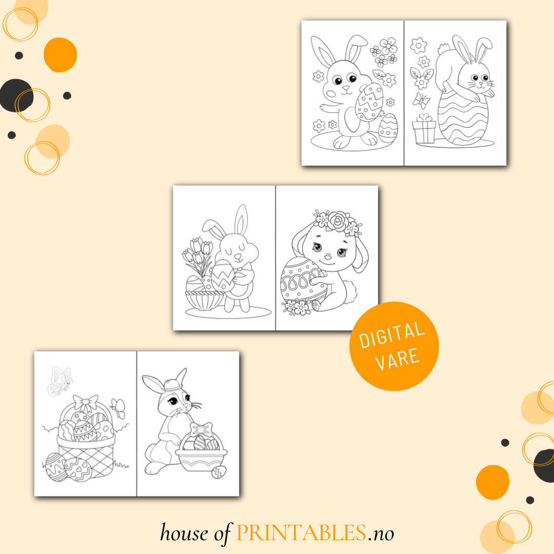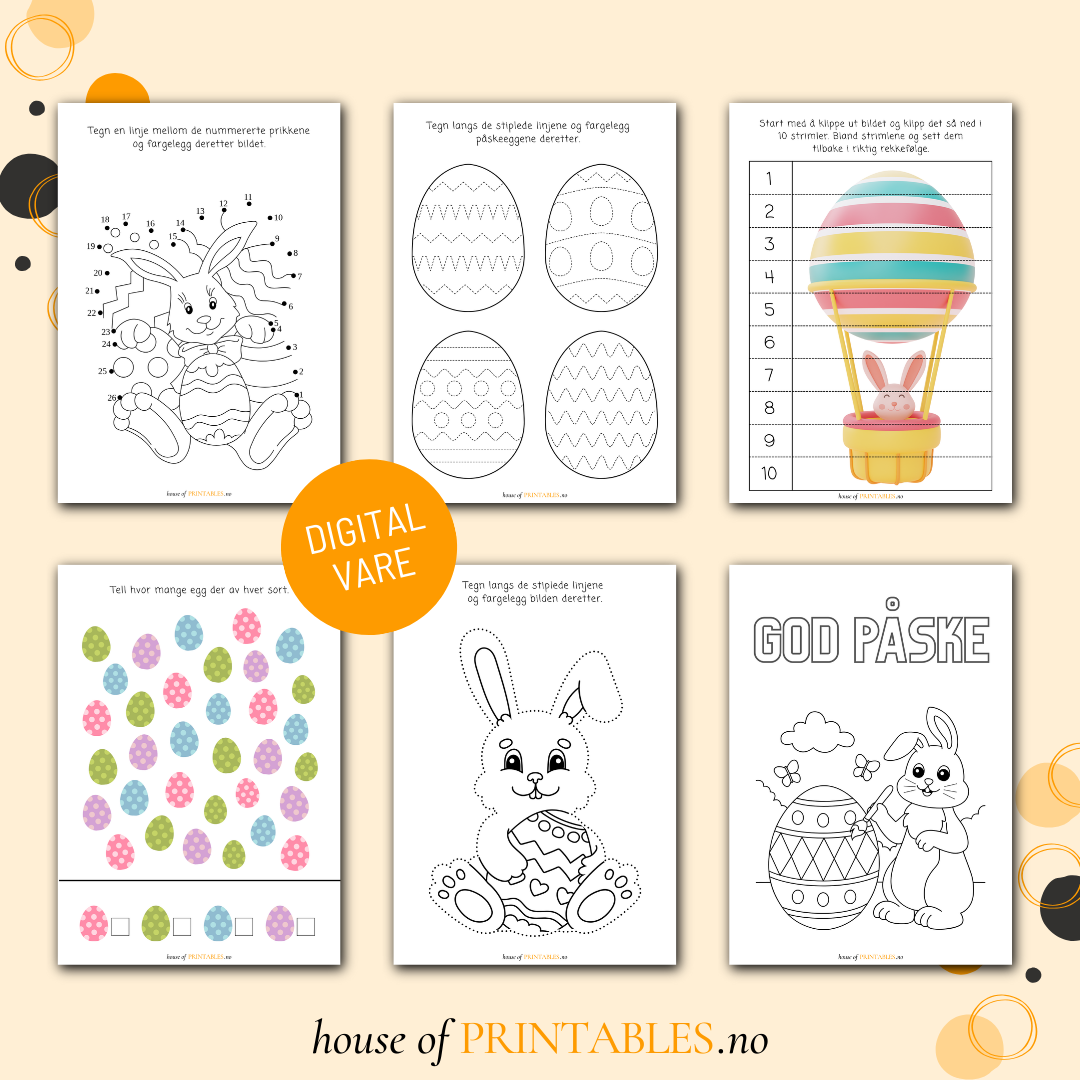 Her finner du 17 artige oppgaver og 19 morsomme påskebilder å fargelegge.