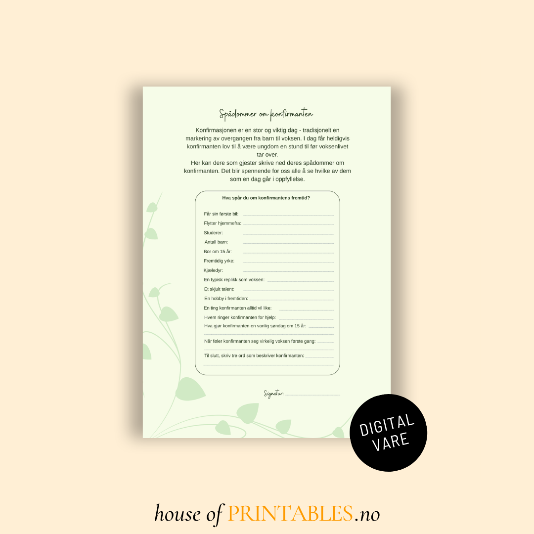 Spådomsark til konfirmasjon - Grønne blader
