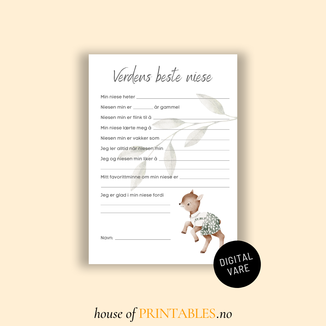 Gi din niese et symbol på hvor høyt du verdsetter henne med denne personlige teksten. Ideell alene eller som litt ekstra sammen med andre gaver.
